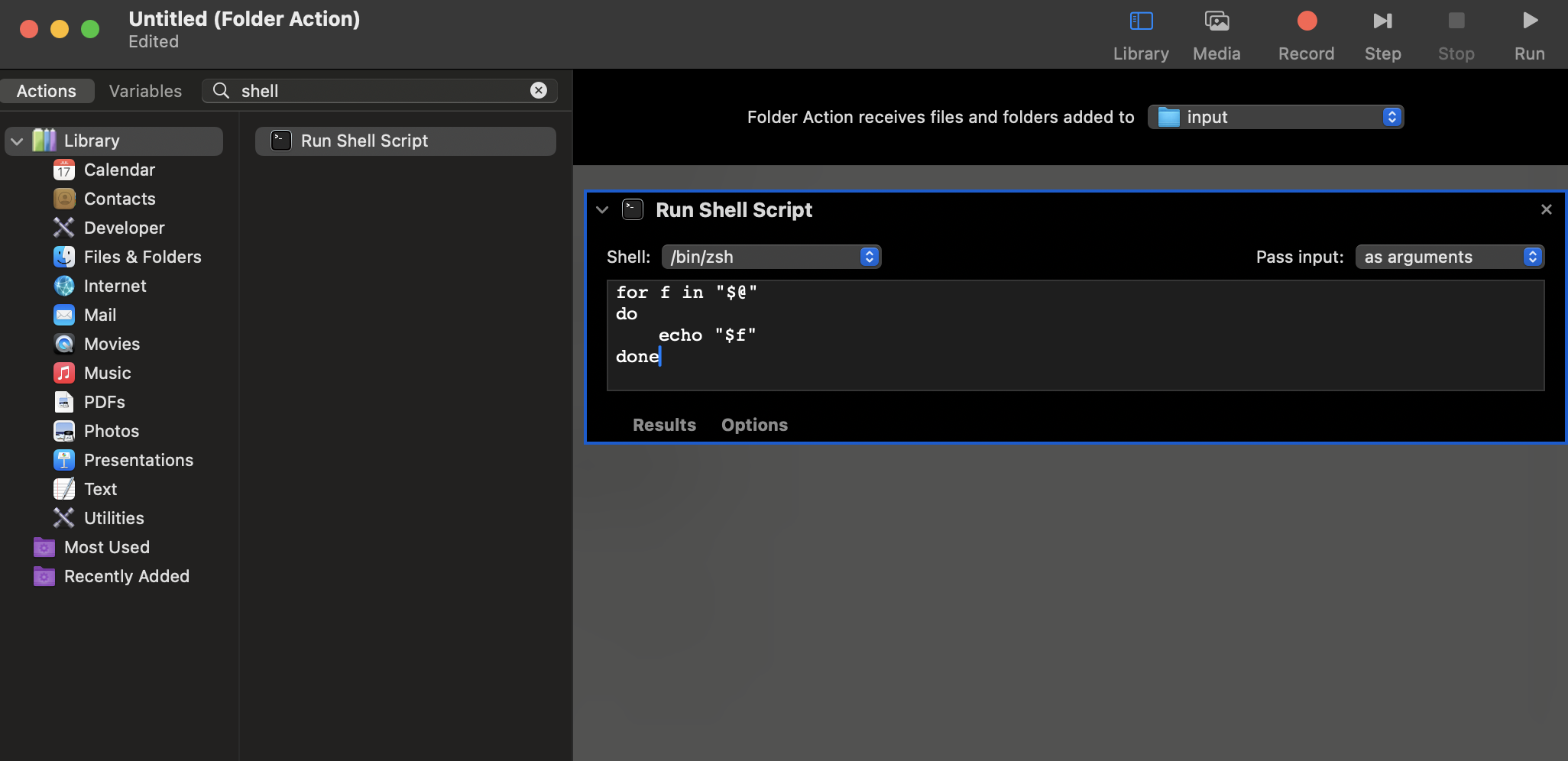 echo "$(date): New file added: $f" >> ~/Documents/folder_action_log.txt